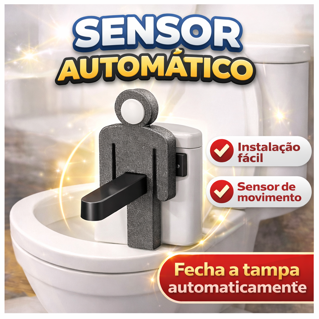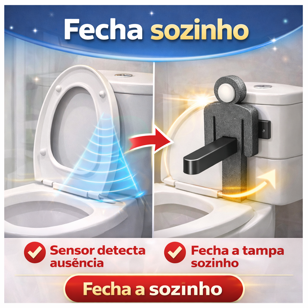 O sensor inteligente detecta que o banheiro ficou vazio e fecha a tampa sozinho em segundos. Acabou discussão, esquecimento e sujeira no banheiro.