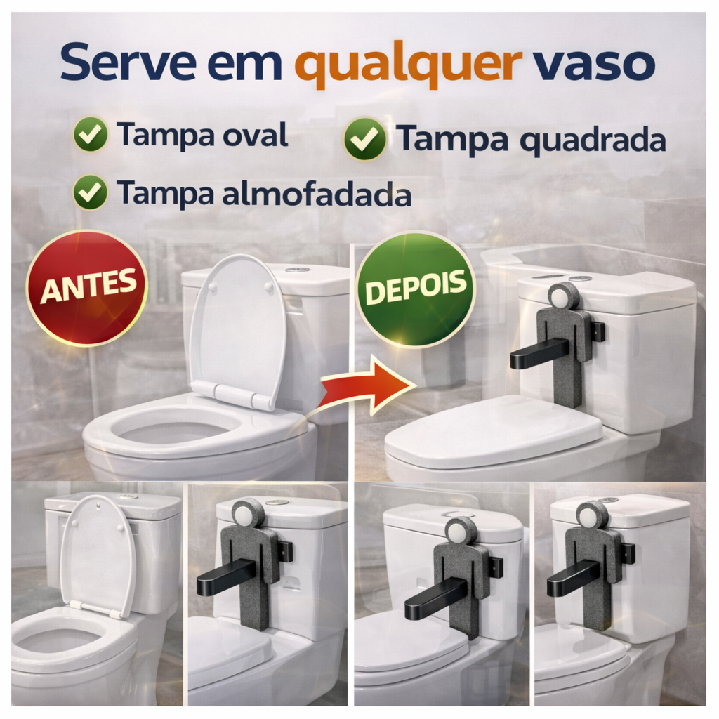 O sensor inteligente detecta que o banheiro ficou vazio e fecha a tampa sozinho em segundos. Acabou discussão, esquecimento e sujeira no banheiro.
